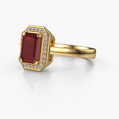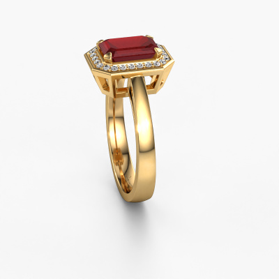 This 14 Carat gold ring is called Dodie 1 eme and is set with 8x6 mm ruby. Does your girlfriend fancy exclusive jewelry? Or would you like to show her that she deserves the finest jewelry? This gold ring is pure craftsmanship, love and passion combined with the latest techniques coming together in perfect harmony. It requires a keen eye, patience and a skillful hand to mold this ring into perfection. Just the job for our expert goldsmith! The ruby set gemstones gives this gold ring an extra glamorous appearance. Customize the style of the special engagement ring to her liking with a wide variety of precious metals and gemstones which you select. That is how you create a unique ring for the most exclusive woman in your life! This jewel is made to shine bright around your finger. Each jewel is hand made with love by our goldsmiths.After receiving your order, our goldsmiths will start the creative process of making your Dodie 1 eme engagement ring. We don't keep stock. This is advantageous because these costs will not be passed on to you. Therefore, we can offer jewelry at exceptionally low prices.Our team adds new designs to our online collection daily. Our designers and goldsmiths work together in creating the best design. We strive to offer a diverse collection of jewels. Perhaps you have a specific jewel design in mind. One you came across somewhere. Please contact us for a free consultation. We will make you an offer, based on a fair price/ quality ratio, that will baffle you.To make it easier for you, we offer a 30 day return policy. Check our terms and conditions.