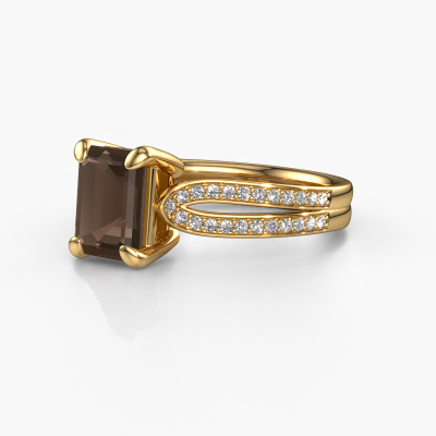This 14 Carat gold ring is called Antonia eme 2 and is set with 8x6 mm smokey quartz. Does your girlfriend fancy exclusive jewelry? Or would you like to show her that she deserves the finest jewelry? This gold ring is pure craftsmanship, love and passion combined with the latest techniques coming together in perfect harmony. It requires a keen eye, patience and a skillful hand to mold this ring into perfection. Just the job for our expert goldsmith! The smokey quartz set gemstones gives this gold ring an extra glamorous appearance. Customize the style of the split band engagement ring to her liking with a wide variety of precious metals and gemstones which you select. That is how you create a unique ring for the most exclusive woman in your life! This jewel is made to shine bright around your finger. Each jewel is hand made with love by our goldsmiths.After receiving your order, our goldsmiths will start the creative process of making your Antonia eme 2 engagement ring. We don't keep stock. This is advantageous because these costs will not be passed on to you. Therefore, we can offer jewelry at exceptionally low prices.Do you have a specific ring in mind? One you came across somewhere. Please feel free to tell us your wishes and we will turn your design into a unique engagement ring. You can follow the development of your ring design because we use 3D drawings. This gives you a realistic preview of your design. We will gladly send you a non-binding offer, based on a fair price/ quality ratio. It will amaze you.To make it easier for you, we offer a 30 day return policy. Check our terms and conditions.
