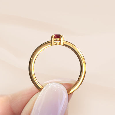 The ring shown above is called the Zohra. We call this type of ring a pavé solitaire ring because it has one center gemstone and a band that is also pave set with gemstones. The 14 Carat gold engagement ring is set with a round 4 mm ruby center stone and the band is pave set with diamond gemstones. Each jewel is made just for you by our master goldsmiths in our own studio.This modern gold pavé solitaire engagement ring has an exquisite round ruby center stone. To further accentuate the center stone, the band is fully set with more diamonds. Its open prong setting allows light to strike the ruby from various angles and this adds sparkle to your ruby ring. The photo shown above depicts the goldsmith's carefully handcrafted details of the ring. The high positioning of the center stone is truly eye-catching. The perfect engagement ring for the crown jewel of your life! Because we design and deliver our own rings, we can offer you a engagement ring at a price you won't find anywhere else. A ring is made to order, which helps prevent excess supplies, so we can make you a great price offer. We understand it feels risky, buying your engagement ring online, but we will gladly assist in the designing process, taking your budget into consideration.Our team adds new designs to our online collection daily. Our designers and goldsmiths work together in creating the best design. We strive to offer a diverse collection of jewels. Perhaps you have a specific jewel design in mind. One you came across somewhere. Please contact us for a free consultation. We will make you an offer, based on a fair price/ quality ratio, that will baffle you.To make it easier for you, we offer a 30 day return policy. Check our terms and conditions.