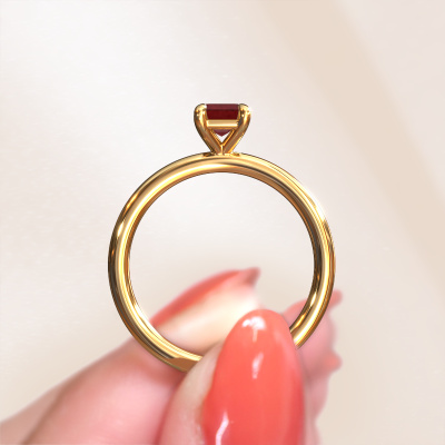 This 14 Carat gold ring is called Simone EME 1 and is set with ruby. Are you in the market for a unique gold engagement ring with a trendy appearance? Then this ring is perfect for you. Simply customize to your or her liking. This traditional charming engagement ring is set with exquisite ruby. It has been carefully selected because your engagement ring must be adorned with nothing but the most beautiful gemstone. Our expert goldsmith will create your ring in our own studio where the ruby will be set with great care. The ring will then be polished to perfection to give it that extra sparkle. The perfect ring for your significant other! By using our modern techniques, we can design and customize the finest quality jewels with the utmost care for you. Our engagement rings are always priced 30 percent lower than other jewelers. We make engagement rings to order so we don't have to maintain a large stock. If you have a certain budget, we are more than happy to advice you accordingly.Do you have a specific ring in mind? One you came across somewhere. Please feel free to tell us your wishes and we will turn your design into a unique engagement ring. You can follow the development of your ring design because we use 3D drawings. This gives you a realistic preview of your design. We will gladly send you a non-binding offer, based on a fair price/ quality ratio. It will amaze you.To make it easier for you, we offer a 30 day return policy. Check our terms and conditions.