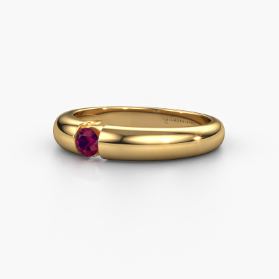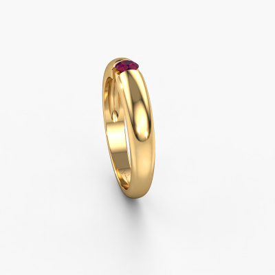 This 14 Carat gold ring is called Amelia and is set with rhodolite. Are you in the market for a unique gold engagement ring with a trendy appearance? Then this ring is perfect for you. Simply customize to your or her liking. This modern orb shaped engagement ring is set with exquisite rhodolite. It has been carefully selected because your engagement ring must be adorned with nothing but the most beautiful gemstone. Our expert goldsmith will create your ring in our own studio where the rhodolite will be set with great care. The ring will then be polished to perfection to give it that extra sparkle. The perfect ring for your significant other! By using a combination of the latest modern techniques, combined with ancient crafting, we can make all our engagement rings in our own studio. Each jewel is made to order. This is advantageous because we can offer you a price you won't find anywhere else.Do you have a specific ring in mind? One you came across somewhere. Please feel free to tell us your wishes and we will turn your design into a unique engagement ring. You can follow the development of your ring design because we use 3D drawings. This gives you a realistic preview of your design. We will gladly send you a non-binding offer, based on a fair price/ quality ratio. It will amaze you.To make it easier for you, we offer a 30 day return policy. Check our terms and conditions.