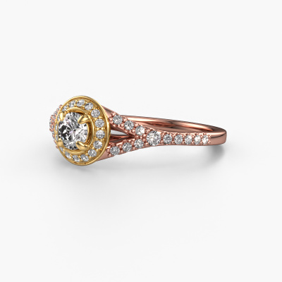 This 14 Carat rose gold ring is called Pamela RND and is set with 0.567 crt diamond. This exclusive rose gold halo engagement ring is a true work of art! The ornaments are crafted with a lot of patience and great passion. In order to create this ring with great precision, this craft requires a keen eye and skillful hand. A challenge which ignites a fire in our expert goldsmith. The exquisite diamonds are set in a special way so they stand out even more. This gives the ring an even more glamorous appearance. The ajour engagement ring is actually unique on its own because of the gemstones which we carefully select especially for this ring. On top of that you select the precious metals which will be used to create a unique ring for the most extraordinary woman in your life! This jewel is unique in every way! Simply customize to your liking,Because we design and deliver our own rings, we can offer you a engagement ring at a price you won't find anywhere else. A ring is made to order, which helps prevent excess supplies, so we can make you a great price offer. We understand it feels risky, buying your engagement ring online, but we will gladly assist in the designing process, taking your budget into consideration.Our team adds new designs to our online collection daily. Our designers and goldsmiths work together in creating the best design. We strive to offer a diverse collection of jewels. Perhaps you have a specific jewel design in mind. One you came across somewhere. Please contact us for a free consultation. We will make you an offer, based on a fair price/ quality ratio, that will baffle you.To make it easier for you, we offer a 30 day return policy. Check our terms and conditions.