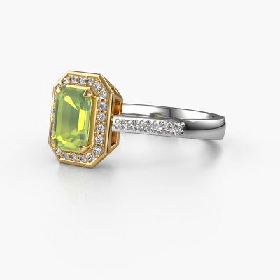 This 14 Carat white gold ring is called Dodie 2 eme and is set with 7x5 mm peridot. This exclusive white gold halo engagement ring is a true work of art! The ornaments are crafted with a lot of patience and great passion. In order to create this ring with great precision, this craft requires a keen eye and skillful hand. A challenge which ignites a fire in our expert goldsmith. The exquisite peridot are set in a special way so they stand out even more. This gives the ring an even more glamorous appearance. The pretty engagement ring is actually unique on its own because of the gemstones which we carefully select especially for this ring. On top of that you select the precious metals which will be used to create a unique ring for the most extraordinary woman in your life! This jewel is made just for you, with attention to detail and design.Because we design and deliver our own rings, we can offer you a engagement ring at a price you won't find anywhere else. A ring is made to order, which helps prevent excess supplies, so we can make you a great price offer. We understand it feels risky, buying your engagement ring online, but we will gladly assist in the designing process, taking your budget into consideration.Do you have a specific ring in mind? One you came across somewhere. Please feel free to tell us your wishes and we will turn your design into a unique engagement ring. You can follow the development of your ring design because we use 3D drawings. This gives you a realistic preview of your design. We will gladly send you a non-binding offer, based on a fair price/ quality ratio. It will amaze you.To make it easier for you, we offer a 30 day return policy. Check our terms and conditions.