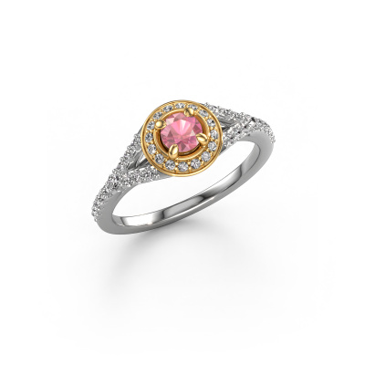 This 14 Carat white gold ring is called Pamela RND and is set with 4 mm tourmaline pink. This exclusive white gold halo engagement ring is a true work of art! The ornaments are crafted with a lot of patience and great passion. In order to create this ring with great precision, this craft requires a keen eye and skillful hand. A challenge which ignites a fire in our expert goldsmith. The exquisite tourmaline pink are set in a special way so they stand out even more. This gives the ring an even more glamorous appearance. The ajour engagement ring is actually unique on its own because of the gemstones which we carefully select especially for this ring. On top of that you select the precious metals which will be used to create a unique ring for the most extraordinary woman in your life! This jewel is unique in every way! Simply customize to your liking,Because we design and deliver our own rings, we can offer you a engagement ring at a price you won't find anywhere else. A ring is made to order, which helps prevent excess supplies, so we can make you a great price offer. We understand it feels risky, buying your engagement ring online, but we will gladly assist in the designing process, taking your budget into consideration.Our team adds new designs to our online collection daily. Our designers and goldsmiths work together in creating the best design. We strive to offer a diverse collection of jewels. Perhaps you have a specific jewel design in mind. One you came across somewhere. Please contact us for a free consultation. We will make you an offer, based on a fair price/ quality ratio, that will baffle you.To make it easier for you, we offer a 30 day return policy. Check our terms and conditions.