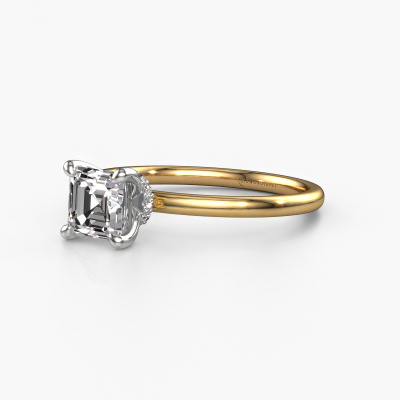 The ring shown above is called the Crystal ASSC 3, we call this a solitaire ring because it contains a single gemstone. The engagement ring is made in 14 Carat gold and has a asscher lab-grown diamond of 1.00 crt. The cool thing about our configurator is that you can compile your own piece of jewelry, into a completely personalized one. This solitaire ring is crafted in the precious metals gold with white gold, but of course you are free to pick your own colors. Each piece of jewelry is created to add sparkle to your finger, each jewel is lovingly made by hand by our goldsmiths.The solitaire ring is a special type of engagement ring. Its open prong setting allows light to strike the gemstone from various angles. This exclusive engagement ring is a stunning eye-catcher because of the high positioning of the gemstone. In order for you to commemorate your proposal with a unique ring, we carefully adorn this solitaire ring by hand. The love of your life deserves nothing but the best. By using our modern techniques, we can design and customize the finest quality jewels with the utmost care for you. Our engagement rings are always priced 30 percent lower than other jewelers. We make engagement rings to order so we don't have to maintain a large stock. If you have a certain budget, we are more than happy to advice you accordingly.Do you have a specific ring in mind? One you came across somewhere. Please feel free to tell us your wishes and we will turn your design into a unique engagement ring. You can follow the development of your ring design because we use 3D drawings. This gives you a realistic preview of your design. We will gladly send you a non-binding offer, based on a fair price/ quality ratio. It will amaze you.To make it easier for you, we offer a 30 day return policy. Check our terms and conditions.