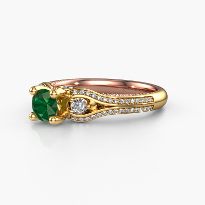 This 14 Carat rose gold ring is called Nikita and is set with 5 mm emerald. An extraordinary rose gold vintage ring. One that will surely make the love of your life shine like a diamond! That is what we hope to achieve. This vintage engagement ring is set with exquisite emerald. Whichever gemstone you choose from our selection, is up to you. The gemstone is selected with great care because we believe your tasteful engagement ring must be adorned with nothing but the most beautiful gemstone. Wouldn't you agree? Our expert goldsmith will design your ring in our own crafting studio, where the emerald will be set with great precision. The ring will then be polished till it shines perfectly. Nothing but the best for the love of your life! This jewel is made just for you by our master goldsmiths in our own studio.After receiving your order, our goldsmiths will start the creative process of making your Nikita engagement ring. We don't keep stock. This is advantageous because these costs will not be passed on to you. Therefore, we can offer jewelry at exceptionally low prices.Do you have a specific ring in mind? One you came across somewhere. Please feel free to tell us your wishes and we will turn your design into a unique engagement ring. You can follow the development of your ring design because we use 3D drawings. This gives you a realistic preview of your design. We will gladly send you a non-binding offer, based on a fair price/ quality ratio. It will amaze you.To make it easier for you, we offer a 30 day return policy. Check our terms and conditions.