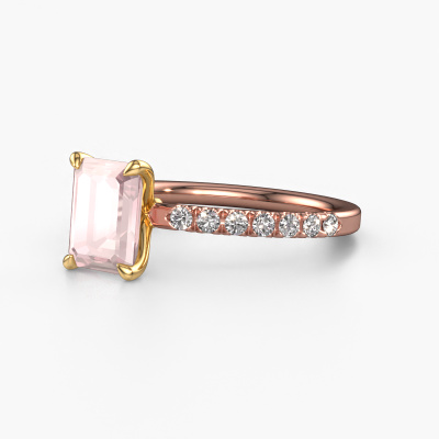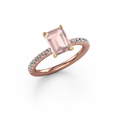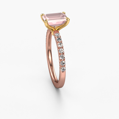 The ring shown above is called the Crystal EME 2, we call this a solitaire ring because it contains a single gemstone. The engagement ring is made in 14 Carat rose gold and has a emerald cut morganite champagne of 8x6 mm. This exclusive rose gold solitaire ring with exquisite emerald cut morganite champagne is a beautiful engagement ring. The open prong setting allows light to strike the gemstone from various angles. The ring also stands out because of the high positioning of the gemstone. Because diamonds symbolize true love and purity, they make the perfect gift for the love of your life. The symbol of eternal love is the centerpiece of this solitaire ring. Like a diamond, all other types of precious metal have their own attributed symbolic meaning. You can compile the pavé solitaire engagement ring yourself in various precious metal combinations. This one has the combination of 14 Carat rose gold with gold. Each piece of jewelry is made just for you by our master goldsmiths in our own studio.By using a combination of the latest modern techniques, combined with ancient crafting, we can make all our engagement rings in our own studio. Each jewel is made to order. This is advantageous because we can offer you a price you won't find anywhere else.Our team adds new designs to our online collection daily. Our designers and goldsmiths work together in creating the best design. We strive to offer a diverse collection of jewels. Perhaps you have a specific jewel design in mind. One you came across somewhere. Please contact us for a free consultation. We will make you an offer, based on a fair price/ quality ratio, that will baffle you.To make it easier for you, we offer a 30 day return policy. Check our terms and conditions.