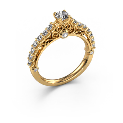 This 14 Carat gold ring is called Shaunda and is set with 0.80 crt diamond. For you, there is only one person in your life who stands out in a crowd. Only one that makes your heart skip a beat. A true gem! She, above all others, deserves a special gift. A unique customized jewel made in her honor. We believe this ring is perfect for your special moment. Each detail of this exclusive gold pavé solitaire engagement ring is selected by hand, crafted and polished by our expert goldsmith in our own artisan studio. We strive to achieve the perfect design and composition of the ring, so it enhances the unique features of our diamonds, and lets them shine even brighter. It takes a lot of precision to make but in the end it pays off because of the sheer beauty of the ring. And that is our main goal. It's what gets us excited. The great thing about our online tool is, that you can design your own jewelry into a unique, personalized piece. This unique special engagement ring is created with the precious metal combination of gold and gold. But of course you are completely free to select other colors. Each piece of jewelry is made to shine bright around your finger. Each jewel is hand made with love by our goldsmiths.By using a combination of the latest modern techniques, combined with ancient crafting, we can make all our engagement rings in our own studio. Each jewel is made to order. This is advantageous because we can offer you a price you won't find anywhere else.Our designers and goldsmiths work together each day, creating new jewels. Perhaps you have found a nice vintage engagement ring somewhere, which can be used to customize your unique ring. Please feel free to contact us. We will make you an offer, based on a fair price/ quality ratio, which will amaze you.To make it easier for you, we offer a 30 day return policy. Check our terms and conditions.