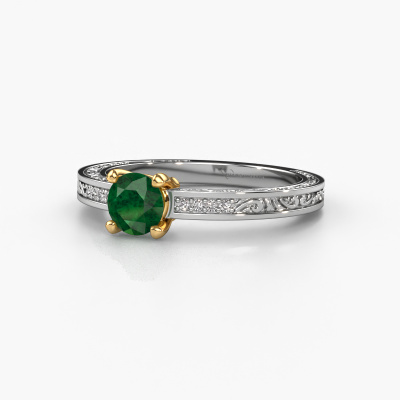 This 14 Carat white gold ring is called Claudette 2 and is set with 5 mm emerald. Is your girlfriend hooked on vintage? Then this white gold filigree engagement ring will surely match her style perfectly. A trendy ring with just a hint of Celtic adornment. A truly stunning, romantic design! Especially when you customize your ring to your own liking. This Celtic pavé solitaire engagement ring is set with stunning emeralds. As you can see, you are the boss in selecting a gemstone which matches the style of your girlfriend best. Each gemstone is carefully selected by our merchants whom are spread throughout the world. Nothing but the best gems for our expert goldsmith. After all, it is his crowning glory! Each jewel is made just for you by our master goldsmiths in our own studio.After receiving your order, our goldsmiths will start the creative process of making your Claudette 2 engagement ring. We don't keep stock. This is advantageous because these costs will not be passed on to you. Therefore, we can offer jewelry at exceptionally low prices.Do you have a specific ring in mind? One you came across somewhere. Please feel free to tell us your wishes and we will turn your design into a unique engagement ring. You can follow the development of your ring design because we use 3D drawings. This gives you a realistic preview of your design. We will gladly send you a non-binding offer, based on a fair price/ quality ratio. It will amaze you.To make it easier for you, we offer a 30 day return policy. Check our terms and conditions.