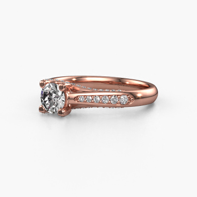 This 14 Carat rose gold ring is called Mia 3 and is set with 5 mm zirconia. This exclusive rose gold pavé solitaire engagement ring is a true work of art! The ornaments are crafted with a lot of patience and great passion. In order to create this ring with great precision, this craft requires a keen eye and skillful hand. A challenge which ignites a fire in our expert goldsmith. The exquisite cz-stones are set in a special way so they stand out even more. This gives the ring an even more glamorous appearance. The shiny engagement ring is actually unique on its own because of the gemstones which we carefully select especially for this ring. On top of that you select the precious metals which will be used to create a unique ring for the most extraordinary woman in your life! This jewel is unique in every way! Simply customize to your likingAre you on a budget? Please feel free to contact us, so we can go discuss your options. We offer our engagement rings at guaranteed best price, because we make them to order. You won't find such a price anywhere else!Our team adds new designs to our online collection daily. Our designers and goldsmiths work together in creating the best design. We strive to offer a diverse collection of jewels. Perhaps you have a specific jewel design in mind. One you came across somewhere. Please contact us for a free consultation. We will make you an offer, based on a fair price/ quality ratio, that will baffle you.To make it easier for you, we offer a 30 day return policy. Check our terms and conditions.