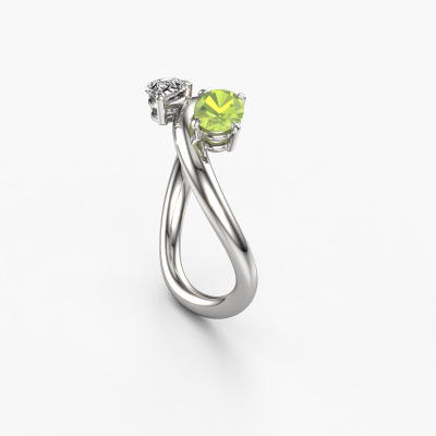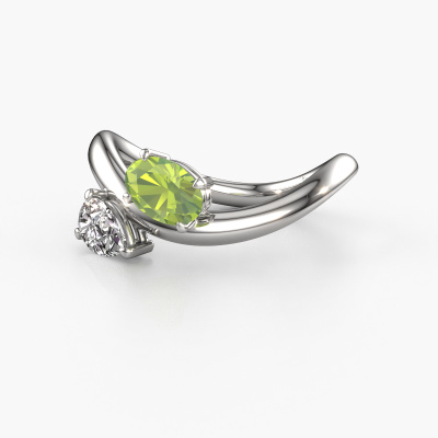 This 14 Carat white gold ring is called Chloe OVL-PER and is set with peridot. How would you describe the style of the love of your life? Does she have a unique sense of style? This stunning twist white gold engagement ring can be custom made to your own or her liking. Our peridot gemstones have been carefully selected because we believe your unique engagement ring must be adorned with nothing but the most beautiful gemstone. Don't you agree? This jewel is created to add sparkle to your finger, each jewel is lovingly made by hand by our goldsmiths.Because we design and deliver our own rings, we can offer you a engagement ring at a price you won't find anywhere else. A ring is made to order, which helps prevent excess supplies, so we can make you a great price offer. We understand it feels risky, buying your engagement ring online, but we will gladly assist in the designing process, taking your budget into consideration.Do you have a specific ring in mind? One you came across somewhere. Please feel free to tell us your wishes and we will turn your design into a unique engagement ring. You can follow the development of your ring design because we use 3D drawings. This gives you a realistic preview of your design. We will gladly send you a non-binding offer, based on a fair price/ quality ratio. It will amaze you.To make it easier for you, we offer a 30 day return policy. Check our terms and conditions.