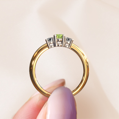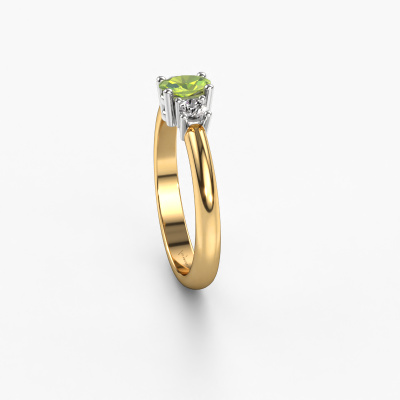 This 14 Carat gold ring is called Karie and is set with peridot. How would you describe the style of the love of your life? Does she have a unique sense of style? This stunning ajour gold engagement ring can be custom made to your own or her liking. Our peridot gemstones have been carefully selected because we believe your traditional engagement ring must be adorned with nothing but the most beautiful gemstone. Don't you agree? This jewel is made just for you by our master goldsmiths in our own studio.After receiving your order, our goldsmiths will passionately start the creative process of making your engagement ring in our own studio. Because we don't have a big stockpile, these costs will not be passed on to you. Our pricing is proof of that! We offer top quality jewels at lowest price, guaranteed.Do you have a specific ring in mind? One you came across somewhere. Please feel free to tell us your wishes and we will turn your design into a unique engagement ring. You can follow the development of your ring design because we use 3D drawings. This gives you a realistic preview of your design. We will gladly send you a non-binding offer, based on a fair price/ quality ratio. It will amaze you.To make it easier for you, we offer a 30 day return policy. Check our terms and conditions.