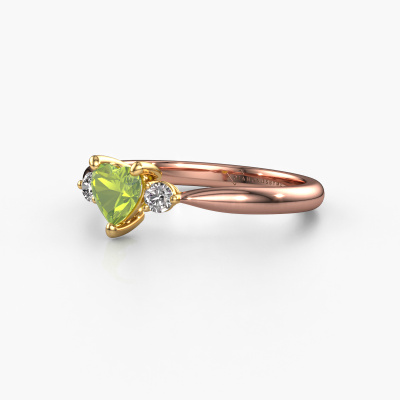 This 14 Carat rose gold ring is called Lieselot HRT and is set with peridot. How would you describe the style of the love of your life? Does she have a unique sense of style? This stunning graceful rose gold engagement ring can be custom made to your own or her liking. Our peridot gemstones have been carefully selected because we believe your fantasy engagement ring must be adorned with nothing but the most beautiful gemstone. Don't you agree? This jewel is made just for you, with attention to detail and design.After receiving your order, our goldsmiths will start the creative process of making your Lieselot HRT engagement ring. We don't keep stock. This is advantageous because these costs will not be passed on to you. Therefore, we can offer jewelry at exceptionally low prices.Our designers and goldsmiths work together each day, creating new jewels. Perhaps you have found a nice fantasy engagement ring somewhere, which can be used to customize your unique ring. Please feel free to contact us. We will make you an offer, based on a fair price/ quality ratio, which will amaze you.To make it easier for you, we offer a 30 day return policy. Check our terms and conditions.
