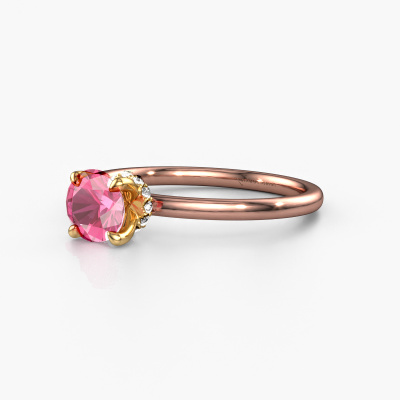 The ring shown above is called the Crystal RND 3, we call this a solitaire ring because it contains a single gemstone. The engagement ring is made in 14 Carat rose gold and has a round pink sapphire of 5.5 mm. The cool thing about our configurator is that you can compile your own piece of jewelry, into a completely personalized one. This solitaire ring is crafted in the precious metals rose gold with gold, but of course you are free to pick your own colors. Each piece of jewelry is made with passion and love by one of our master goldsmiths.The solitaire ring is a special type of engagement ring. Its open prong setting allows light to strike the gemstone from various angles. This classic engagement ring is a stunning eye-catcher because of the high positioning of the gemstone. In order for you to commemorate your proposal with a unique ring, we carefully adorn this solitaire ring by hand. The love of your life deserves nothing but the best. By using a combination of the latest modern techniques, combined with ancient crafting, we can make all our engagement rings in our own studio. Each jewel is made to order. This is advantageous because we can offer you a price you won't find anywhere else.Different styles of new rings are made daily by our team. Perhaps you have found a solitaire engagement ring somewhere. One you would like to give to your loved one. Please feel free to share your thoughts and design with our jewel designers. We would love to turn your design into a classic engagement ring. You can follow the development of your ring design because we use very detailed 3D drawings. On top of that, you can order a dummy of the design. A dummy is a plastic ring, which can be shaped according your ring design. You can try it on and check if the engagement ring is up to standard. We will gladly send you a non-binding offer, based on a fair price/ quality ratio. The offer will baffle you, considering the quality of the ring and gemstones.To make it easier for you, we offer a 30 day return policy. Check our terms and conditions.
