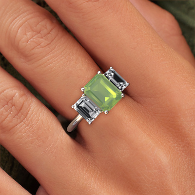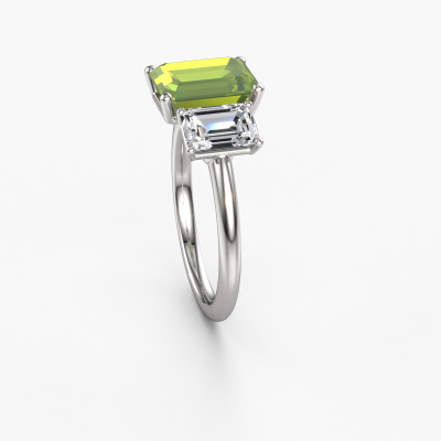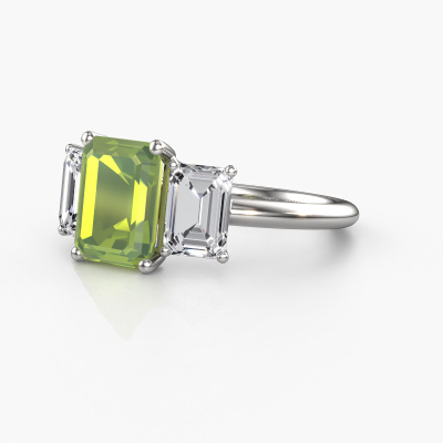 This platinum ring is called Sandra and is set with 9x7 mm peridot. Does your girlfriend fancy exclusive jewelry? Or would you like to show her that she deserves the finest jewelry? This platinum ring is pure craftsmanship, love and passion combined with the latest techniques coming together in perfect harmony. It requires a keen eye, patience and a skillful hand to mold this ring into perfection. Just the job for our expert goldsmith! The peridot set gemstones gives this platinum ring an extra glamorous appearance. Customize the style of the special engagement ring to her liking with a wide variety of precious metals and gemstones which you select. That is how you create a unique ring for the most exclusive woman in your life! This jewel is made just for you by our master goldsmiths in our own studio.Because we design and deliver our own rings, we can offer you a engagement ring at a price you won't find anywhere else. A ring is made to order, which helps prevent excess supplies, so we can make you a great price offer. We understand it feels risky, buying your engagement ring online, but we will gladly assist in the designing process, taking your budget into consideration.Different styles of new rings are made daily by our team. Perhaps you have found a 3-stone engagement ring somewhere. One you would like to give to your loved one. Please feel free to share your thoughts and design with our jewel designers. We would love to turn your design into a exclusive engagement ring. You can follow the development of your ring design because we use very detailed 3D drawings. On top of that, you can order a dummy of the design. A dummy is a plastic ring, which can be shaped according your ring design. You can try it on and check if the engagement ring is up to standard. We will gladly send you a non-binding offer, based on a fair price/ quality ratio. The offer will baffle you, considering the quality of the ring and gemstones.To make it easier for you, we offer a 30 day return policy. Check our terms and conditions.