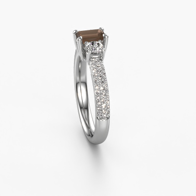 This platinum ring is called Marielle EME and is set with 6x4 mm smokey quartz. Does your girlfriend fancy exclusive jewelry? Or would you like to show her that she deserves the finest jewelry? This platinum ring is pure craftsmanship, love and passion combined with the latest techniques coming together in perfect harmony. It requires a keen eye, patience and a skillful hand to mold this ring into perfection. Just the job for our expert goldsmith! The smokey quartz set gemstones gives this platinum ring an extra glamorous appearance. Customize the style of the special engagement ring to her liking with a wide variety of precious metals and gemstones which you select. That is how you create a unique ring for the most exclusive woman in your life! This jewel is created to add sparkle to your finger, each jewel is lovingly made by hand by our goldsmiths.Because we design and deliver our own rings, we can offer you a engagement ring at a price you won't find anywhere else. A ring is made to order, which helps prevent excess supplies, so we can make you a great price offer. We understand it feels risky, buying your engagement ring online, but we will gladly assist in the designing process, taking your budget into consideration.Our team adds new designs to our online collection daily. Our designers and goldsmiths work together in creating the best design. We strive to offer a diverse collection of jewels. Perhaps you have a specific jewel design in mind. One you came across somewhere. Please contact us for a free consultation. We will make you an offer, based on a fair price/ quality ratio, that will baffle you.To make it easier for you, we offer a 30 day return policy. Check our terms and conditions.