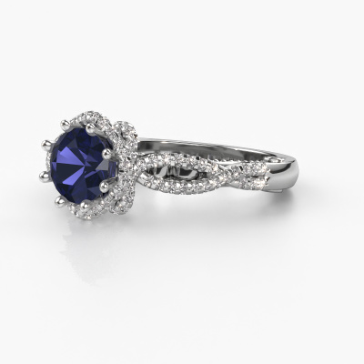 This platinum ring is called Lysanne and is set with 6.5 mm sapphire. This filigree platinum engagement ring is a true work of art! A beautifully adorned design of intricate wires. With dedication, patience and the utmost precision, our expert goldsmith will design a ring just for you. The adornment of small wiring is crafted to perfection by hand. It's a lengthy process which includes welding, crafting and polishing until our Goldsmiths are completely satisfied with the result: a perfect eye-catching ring that makes her shine with delight. Therefore the vintage filigree engagement ring is an extraordinary gift to bestow upon the love of your life. A handmade one-of-a-kind personalized ring, to be given to that special someone on that special moment when you pop the question. Isn't that wonderful? This piece of jewelry is made by a team of passionate goldsmiths and jewel designers. This will make your crown jewel truly eye-catching.After receiving your order, our goldsmiths will start the creative process of making your Lysanne engagement ring. We don't keep stock. This is advantageous because these costs will not be passed on to you. Therefore, we can offer jewelry at exceptionally low prices.Have you found a specific engagement ring somewhere which you would like to give to your loved one? Please feel free to express your wishes to our jewel designers because we would be honored to turn your design into a vintage engagement ring. You can follow the development of your ring design because we use 3D drawings. This gives you a realistic preview of how your design will look. You can also preorder a dummy. A dummy is a plastic ring, which can be shaped according your ring design. You can try it on and check if its width and size are suitable for you. We will gladly send you a non-binding offer, based on a fair price/ quality ratio. It will amaze you, considering the quality of the ring and gemstones.To make it easier for you, we offer a 30 day return policy. Check our terms and conditions.