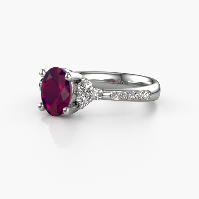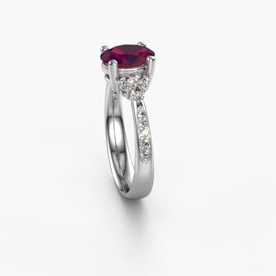 This platinum ring is called Aleida OVL 2 and is set with 8x6 mm rhodolite. Does your girlfriend fancy exclusive jewelry? Or would you like to show her that she deserves the finest jewelry? This platinum ring is pure craftsmanship, love and passion combined with the latest techniques coming together in perfect harmony. It requires a keen eye, patience and a skillful hand to mold this ring into perfection. Just the job for our expert goldsmith! The rhodolite set gemstones gives this platinum ring an extra glamorous appearance. Customize the style of the charming engagement ring to her liking with a wide variety of precious metals and gemstones which you select. That is how you create a unique ring for the most exclusive woman in your life! This jewel is made just for you by our master goldsmiths in our own studio.By using a combination of the latest modern techniques, combined with ancient crafting, we can make all our engagement rings in our own studio. Each jewel is made to order. This is advantageous because we can offer you a price you won't find anywhere else.Do you have a specific ring in mind? One you came across somewhere. Please feel free to tell us your wishes and we will turn your design into a unique engagement ring. You can follow the development of your ring design because we use 3D drawings. This gives you a realistic preview of your design. We will gladly send you a non-binding offer, based on a fair price/ quality ratio. It will amaze you.To make it easier for you, we offer a 30 day return policy. Check our terms and conditions.