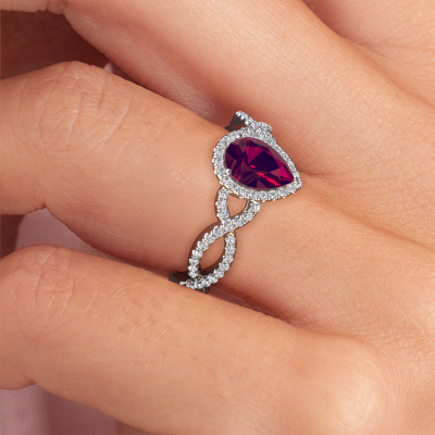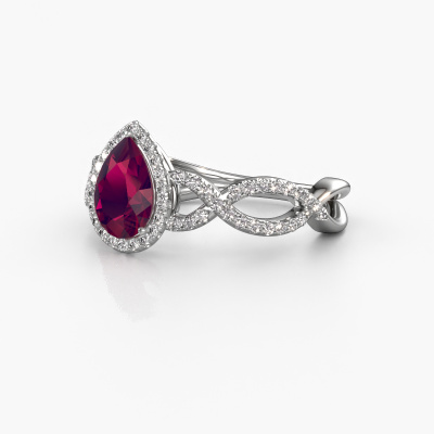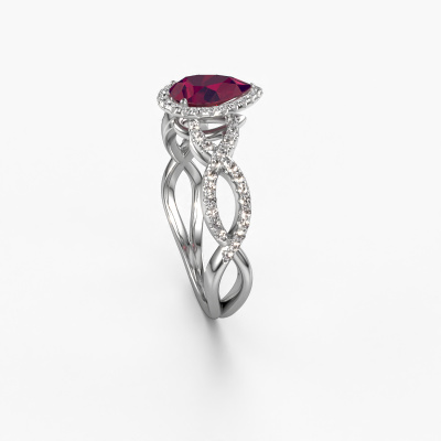 This platinum ring is called Dionne pear and is set with 7x5 mm rhodolite. Does your girlfriend fancy exclusive jewelry? Or would you like to show her that she deserves the finest jewelry? This platinum ring is pure craftsmanship, love and passion combined with the latest techniques coming together in perfect harmony. It requires a keen eye, patience and a skillful hand to mold this ring into perfection. Just the job for our expert goldsmith! The rhodolite set gemstones gives this platinum ring an extra glamorous appearance. Customize the style of the twist engagement ring to her liking with a wide variety of precious metals and gemstones which you select. That is how you create a unique ring for the most exclusive woman in your life! This jewel is created to add sparkle to your finger, each jewel is lovingly made by hand by our goldsmiths.Are you on a budget? Please feel free to contact us, so we can go discuss your options. We offer our engagement rings at guaranteed best price, because we make them to order. You won't find such a price anywhere else!Different styles of new rings are made daily by our team. Perhaps you have found a pavé solitaire engagement ring somewhere. One you would like to give to your loved one. Please feel free to share your thoughts and design with our jewel designers. We would love to turn your design into a exclusive engagement ring. You can follow the development of your ring design because we use very detailed 3D drawings. On top of that, you can order a dummy of the design. A dummy is a plastic ring, which can be shaped according your ring design. You can try it on and check if the engagement ring is up to standard. We will gladly send you a non-binding offer, based on a fair price/ quality ratio. The offer will baffle you, considering the quality of the ring and gemstones.To make it easier for you, we offer a 30 day return policy. Check our terms and conditions.