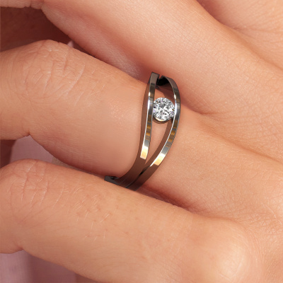 This platinum ring is called Sigrid 1 and is set with 0.20 crt lab-grown diamond. This design platinum engagement ring is a true masterpiece! Our expert goldsmith uses special techniques during crafting of this tension set ring to make sure the lab-grown diamond of this platinum ring is fixed properly. The effect is that light fall reflects beautifully on the gemstone, which gives the ring its maximum shine and glamorous appearance. The result is a unique ring, with a trendy appearance, passionately handcrafted to perfection by our artisan goldsmith. A one-of-a-kind ring, designed for the love of your life! This jewel is made to shine bright around your finger. Each jewel is hand made with love by our goldsmiths.By using our modern techniques, we can design and customize the finest quality jewels with the utmost care for you. Our engagement rings are always priced 30 percent lower than other jewelers. We make engagement rings to order so we don't have to maintain a large stock. If you have a certain budget, we are more than happy to advice you accordingly.Different styles of new rings are made daily by our team. Perhaps you have found a solitaire engagement ring somewhere. One you would like to give to your loved one. Please feel free to share your thoughts and design with our jewel designers. We would love to turn your design into a design engagement ring. You can follow the development of your ring design because we use very detailed 3D drawings. On top of that, you can order a dummy of the design. A dummy is a plastic ring, which can be shaped according your ring design. You can try it on and check if the engagement ring is up to standard. We will gladly send you a non-binding offer, based on a fair price/ quality ratio. The offer will baffle you, considering the quality of the ring and gemstones.To make it easier for you, we offer a 30 day return policy. Check our terms and conditions.
