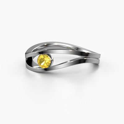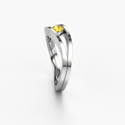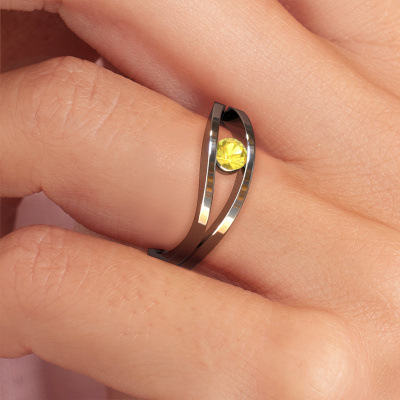 This platinum ring is called Sigrid 1 and is set with 3.7 mm yellow sapphire. This design platinum engagement ring is a true masterpiece! Our expert goldsmith uses special techniques during crafting of this tension set ring to make sure the yellow sapphire of this platinum ring is fixed properly. The effect is that light fall reflects beautifully on the gemstone, which gives the ring its maximum shine and glamorous appearance. The result is a unique ring, with a trendy appearance, passionately handcrafted to perfection by our artisan goldsmith. A one-of-a-kind ring, designed for the love of your life! This jewel is made to shine bright around your finger. Each jewel is hand made with love by our goldsmiths.By using our modern techniques, we can design and customize the finest quality jewels with the utmost care for you. Our engagement rings are always priced 30 percent lower than other jewelers. We make engagement rings to order so we don't have to maintain a large stock. If you have a certain budget, we are more than happy to advice you accordingly.Different styles of new rings are made daily by our team. Perhaps you have found a solitaire engagement ring somewhere. One you would like to give to your loved one. Please feel free to share your thoughts and design with our jewel designers. We would love to turn your design into a design engagement ring. You can follow the development of your ring design because we use very detailed 3D drawings. On top of that, you can order a dummy of the design. A dummy is a plastic ring, which can be shaped according your ring design. You can try it on and check if the engagement ring is up to standard. We will gladly send you a non-binding offer, based on a fair price/ quality ratio. The offer will baffle you, considering the quality of the ring and gemstones.To make it easier for you, we offer a 30 day return policy. Check our terms and conditions.