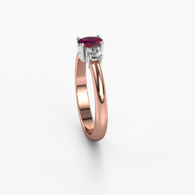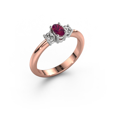 This 14 Carat rose gold ring is called Karie and is set with rhodolite. How would you describe the style of the love of your life? Does she have a unique sense of style? This stunning ajour rose gold engagement ring can be custom made to your own or her liking. Our rhodolite gemstones have been carefully selected because we believe your traditional engagement ring must be adorned with nothing but the most beautiful gemstone. Don't you agree? This jewel is made just for you by our master goldsmiths in our own studio.After receiving your order, our goldsmiths will passionately start the creative process of making your engagement ring in our own studio. Because we don't have a big stockpile, these costs will not be passed on to you. Our pricing is proof of that! We offer top quality jewels at lowest price, guaranteed.Do you have a specific ring in mind? One you came across somewhere. Please feel free to tell us your wishes and we will turn your design into a unique engagement ring. You can follow the development of your ring design because we use 3D drawings. This gives you a realistic preview of your design. We will gladly send you a non-binding offer, based on a fair price/ quality ratio. It will amaze you.To make it easier for you, we offer a 30 day return policy. Check our terms and conditions.