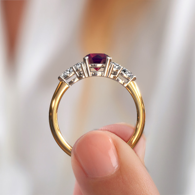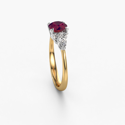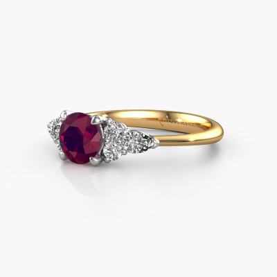 This 14 Carat gold ring is called Melani RND and is set with rhodolite. How would you describe the style of the love of your life? Does she have a unique sense of style? This stunning charming gold engagement ring can be custom made to your own or her liking. Our rhodolite gemstones have been carefully selected because we believe your contemporary engagement ring must be adorned with nothing but the most beautiful gemstone. Don't you agree? This jewel is made just for you by our master goldsmiths in our own studio.Because we design and deliver our own rings, we can offer you a engagement ring at a price you won't find anywhere else. A ring is made to order, which helps prevent excess supplies, so we can make you a great price offer. We understand it feels risky, buying your engagement ring online, but we will gladly assist in the designing process, taking your budget into consideration.Our team adds new designs to our online collection daily. Our designers and goldsmiths work together in creating the best design. We strive to offer a diverse collection of jewels. Perhaps you have a specific jewel design in mind. One you came across somewhere. Please contact us for a free consultation. We will make you an offer, based on a fair price/ quality ratio, that will baffle you.To make it easier for you, we offer a 30 day return policy. Check our terms and conditions.