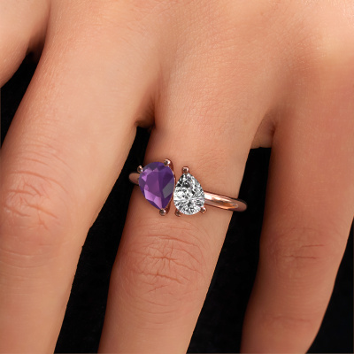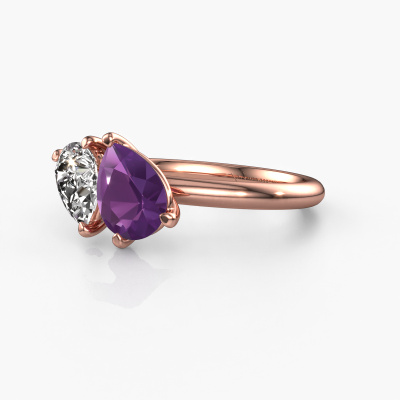 This 14 Carat rose gold ring is called Toi et Moi PER-PER and is set with amethyst. Are you in the market for a unique rose gold engagement ring with a trendy appearance? Then this ring is perfect for you. Simply customize to your or her liking. This fashionable fashionable engagement ring is set with exquisite amethyst. It has been carefully selected because your engagement ring must be adorned with nothing but the most beautiful gemstone. Our expert goldsmith will create your ring in our own studio where the amethyst will be set with great care. The ring will then be polished to perfection to give it that extra sparkle. The perfect ring for your significant other! After receiving your order, our goldsmiths will passionately start the creative process of making your engagement ring in our own studio. Because we don't have a big stockpile, these costs will not be passed on to you. Our pricing is proof of that! We offer top quality jewels at lowest price, guaranteed.Our designers and goldsmiths work together each day, creating new jewels. Perhaps you have found a nice fashionable engagement ring somewhere, which can be used to customize your unique ring. Please feel free to contact us. We will make you an offer, based on a fair price/ quality ratio, which will amaze you.To make it easier for you, we offer a 30 day return policy. Check our terms and conditions.