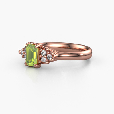 This 14 Carat rose gold ring is called Myrna EME and is set with 6x4 mm peridot. This filigree rose gold engagement ring is a true work of art! A beautifully adorned design of intricate wires. With dedication, patience and the utmost precision, our expert goldsmith will design a ring just for you. The adornment of small wiring is crafted to perfection by hand. It's a lengthy process which includes welding, crafting and polishing until our Goldsmiths are completely satisfied with the result: a perfect eye-catching ring that makes her shine with delight. Therefore the vintage filigree engagement ring is an extraordinary gift to bestow upon the love of your life. A handmade one-of-a-kind personalized ring, to be given to that special someone on that special moment when you pop the question. Isn't that wonderful? This piece of jewelry is unique in every way! Simply customize to your likingBy using our modern techniques, we can design and customize the finest quality jewels with the utmost care for you. Our engagement rings are always priced 30 percent lower than other jewelers. We make engagement rings to order so we don't have to maintain a large stock. If you have a certain budget, we are more than happy to advice you accordingly.Have you found a specific engagement ring somewhere which you would like to give to your loved one? Please feel free to express your wishes to our jewel designers because we would be honored to turn your design into a vintage engagement ring. You can follow the development of your ring design because we use 3D drawings. This gives you a realistic preview of how your design will look. You can also preorder a dummy. A dummy is a plastic ring, which can be shaped according your ring design. You can try it on and check if its width and size are suitable for you. We will gladly send you a non-binding offer, based on a fair price/ quality ratio. It will amaze you, considering the quality of the ring and gemstones.To make it easier for you, we offer a 30 day return policy. Check our terms and conditions.