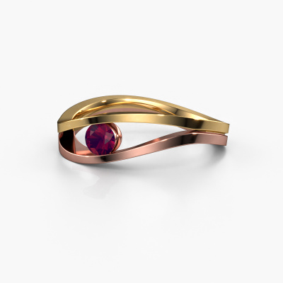 This 14 Carat rose gold ring is called Sigrid 1 and is set with 3.7 mm rhodolite. This design rose gold engagement ring is a true masterpiece! Our expert goldsmith uses special techniques during crafting of this tension set ring to make sure the rhodolite of this rose gold ring is fixed properly. The effect is that light fall reflects beautifully on the gemstone, which gives the ring its maximum shine and glamorous appearance. The result is a unique ring, with a trendy appearance, passionately handcrafted to perfection by our artisan goldsmith. A one-of-a-kind ring, designed for the love of your life! This jewel is made to shine bright around your finger. Each jewel is hand made with love by our goldsmiths.By using our modern techniques, we can design and customize the finest quality jewels with the utmost care for you. Our engagement rings are always priced 30 percent lower than other jewelers. We make engagement rings to order so we don't have to maintain a large stock. If you have a certain budget, we are more than happy to advice you accordingly.Different styles of new rings are made daily by our team. Perhaps you have found a solitaire engagement ring somewhere. One you would like to give to your loved one. Please feel free to share your thoughts and design with our jewel designers. We would love to turn your design into a design engagement ring. You can follow the development of your ring design because we use very detailed 3D drawings. On top of that, you can order a dummy of the design. A dummy is a plastic ring, which can be shaped according your ring design. You can try it on and check if the engagement ring is up to standard. We will gladly send you a non-binding offer, based on a fair price/ quality ratio. The offer will baffle you, considering the quality of the ring and gemstones.To make it easier for you, we offer a 30 day return policy. Check our terms and conditions.