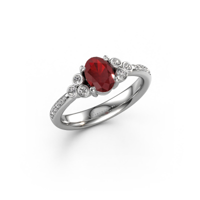 This platinum ring is called Lucy 2 and is set with ruby. How would you describe the style of the love of your life? Does she have a unique sense of style? This stunning graceful platinum engagement ring can be custom made to your own or her liking. Our ruby gemstones have been carefully selected because we believe your classic engagement ring must be adorned with nothing but the most beautiful gemstone. Don't you agree? This jewel is made to shine bright around your finger. Each jewel is hand made with love by our goldsmiths.By using our modern techniques, we can design and customize the finest quality jewels with the utmost care for you. Our engagement rings are always priced 30 percent lower than other jewelers. We make engagement rings to order so we don't have to maintain a large stock. If you have a certain budget, we are more than happy to advice you accordingly.Do you have a specific ring in mind? One you came across somewhere. Please feel free to tell us your wishes and we will turn your design into a unique engagement ring. You can follow the development of your ring design because we use 3D drawings. This gives you a realistic preview of your design. We will gladly send you a non-binding offer, based on a fair price/ quality ratio. It will amaze you.To make it easier for you, we offer a 30 day return policy. Check our terms and conditions.