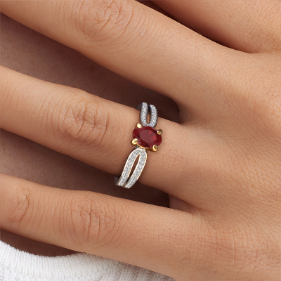 The ring shown above is called the Antonia ovl 2. We call this type of ring a pavé solitaire ring because it has one center gemstone and a band that is also pave set with gemstones. The 14 Carat white gold engagement ring is set with a oval 7x5 mm ruby center stone and the band is pave set with diamond gemstones. Each jewel is unique in every way! Simply customize to your liking,This contemporary white gold pavé solitaire engagement ring has an exquisite oval ruby center stone. To further accentuate the center stone, the band is fully set with more diamonds. Its open prong setting allows light to strike the ruby from various angles and this adds sparkle to your ruby ring. The photo shown above depicts the goldsmith's carefully handcrafted details of the ring. The high positioning of the center stone is truly eye-catching. The perfect engagement ring for the crown jewel of your life! By using a combination of the latest modern techniques, combined with ancient crafting, we can make all our engagement rings in our own studio. Each jewel is made to order. This is advantageous because we can offer you a price you won't find anywhere else.Our team adds new designs to our online collection daily. Our designers and goldsmiths work together in creating the best design. We strive to offer a diverse collection of jewels. Perhaps you have a specific jewel design in mind. One you came across somewhere. Please contact us for a free consultation. We will make you an offer, based on a fair price/ quality ratio, that will baffle you.To make it easier for you, we offer a 30 day return policy. Check our terms and conditions.