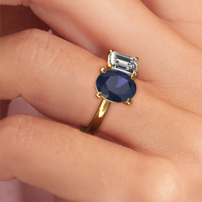 This 14 Carat gold ring is called Toi et Moi OVL-EME and is set with 9x7 mm sapphire. What is it that makes your relationship unique? What is it about her that makes you want to bend down on one knee? The unique bond between the two of you is emphasized by an equally unique ring. A one of a kind charming 2 stone engagement ring made especially for her. That is why this exclusive ring fits her like a glove. Each specific detail of this charming gold sapphire set engagement ring is hand-picked, crafted and polished by our expert goldsmith. The result is an exquisite ring, unique and perfectly crafted to perfection. That is what our expert Goldsmiths strive for. This jewel is made just for you, with attention to detail and design.After receiving your order, our goldsmiths will start the creative process of making your Toi et Moi OVL-EME engagement ring. We don't keep stock. This is advantageous because these costs will not be passed on to you. Therefore, we can offer jewelry at exceptionally low prices.Our team adds new designs to our online collection daily. Our designers and goldsmiths work together in creating the best design. We strive to offer a diverse collection of jewels. Perhaps you have a specific jewel design in mind. One you came across somewhere. Please contact us for a free consultation. We will make you an offer, based on a fair price/ quality ratio, that will baffle you.To make it easier for you, we offer a 30 day return policy. Check our terms and conditions.