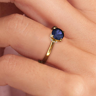 The ring shown above is called the Crystal RND 3, we call this a solitaire ring because it contains a single gemstone. The engagement ring is made in 14 Carat gold and has a round sapphire of 5.5 mm. The cool thing about our configurator is that you can compile your own piece of jewelry, into a completely personalized one. This solitaire ring is crafted in the precious metals gold with gold, but of course you are free to pick your own colors. Each piece of jewelry is made with passion and love by one of our master goldsmiths.The solitaire ring is a special type of engagement ring. Its open prong setting allows light to strike the gemstone from various angles. This classic engagement ring is a stunning eye-catcher because of the high positioning of the gemstone. In order for you to commemorate your proposal with a unique ring, we carefully adorn this solitaire ring by hand. The love of your life deserves nothing but the best. By using a combination of the latest modern techniques, combined with ancient crafting, we can make all our engagement rings in our own studio. Each jewel is made to order. This is advantageous because we can offer you a price you won't find anywhere else.Different styles of new rings are made daily by our team. Perhaps you have found a solitaire engagement ring somewhere. One you would like to give to your loved one. Please feel free to share your thoughts and design with our jewel designers. We would love to turn your design into a classic engagement ring. You can follow the development of your ring design because we use very detailed 3D drawings. On top of that, you can order a dummy of the design. A dummy is a plastic ring, which can be shaped according your ring design. You can try it on and check if the engagement ring is up to standard. We will gladly send you a non-binding offer, based on a fair price/ quality ratio. The offer will baffle you, considering the quality of the ring and gemstones.To make it easier for you, we offer a 30 day return policy. Check our terms and conditions.