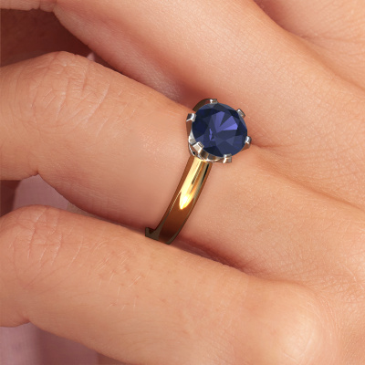 The ring shown above is called the Tiffy 1, we call this a solitaire ring because it contains a single gemstone. The engagement ring is made in 14 Carat gold and has a round sapphire of 7 mm. The cool thing about our configurator is that you can compile your own piece of jewelry, into a completely personalized one. This solitaire ring is crafted in the precious metals gold with white gold, but of course you are free to pick your own colors. Each piece of jewelry is made just for you, with attention to detail and design.The solitaire ring is a special type of engagement ring. Its open prong setting allows light to strike the gemstone from various angles. This classic engagement ring is a stunning eye-catcher because of the high positioning of the gemstone. In order for you to commemorate your proposal with a unique ring, we carefully adorn this solitaire ring by hand. The love of your life deserves nothing but the best. By using our modern techniques, we can design and customize the finest quality jewels with the utmost care for you. Our engagement rings are always priced 30 percent lower than other jewelers. We make engagement rings to order so we don't have to maintain a large stock. If you have a certain budget, we are more than happy to advice you accordingly.Our designers and goldsmiths work together each day, creating new jewels. Perhaps you have found a nice classic engagement ring somewhere, which can be used to customize your unique ring. Please feel free to contact us. We will make you an offer, based on a fair price/ quality ratio, which will amaze you.To make it easier for you, we offer a 30 day return policy. Check our terms and conditions.