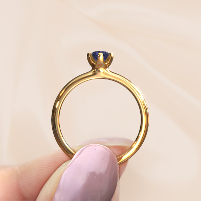 In your eyes, no one else compares to her. She is one in a million, unlike anyone else and pure? These qualities are emphasized perfectly by our modern gold solitaire sapphire ring. This sapphire is carefully selected by our keen artisan goldsmiths. It equals the unique qualities of the love of your life. There is no better way to memorialize your proposal than this symbol of true love. The ring shown above is called the Lorretta, we call this a solitaire ring because it contains a single gemstone. The engagement ring is made in 14 Carat gold and has a round sapphire of 4.7 mm. Each piece of jewelry is made with passion and love by one of our master goldsmiths.By using a combination of the latest modern techniques, combined with ancient crafting, we can make all our engagement rings in our own studio. Each jewel is made to order. This is advantageous because we can offer you a price you won't find anywhere else.Our team adds new designs to our online collection daily. Our designers and goldsmiths work together in creating the best design. We strive to offer a diverse collection of jewels. Perhaps you have a specific jewel design in mind. One you came across somewhere. Please contact us for a free consultation. We will make you an offer, based on a fair price/ quality ratio, that will baffle you.To make it easier for you, we offer a 30 day return policy. Check our terms and conditions.