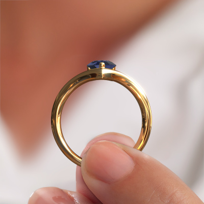 In your eyes, no one else compares to her. She is one in a million, unlike anyone else and pure? These qualities are emphasized perfectly by our modern gold solitaire sapphire ring. This sapphire is carefully selected by our keen artisan goldsmiths. It equals the unique qualities of the love of your life. There is no better way to memorialize your proposal than this symbol of true love. The ring shown above is called the Maddy PER, we call this a solitaire ring because it contains a single gemstone. The engagement ring is made in 14 Carat gold and has a pear sapphire of 8x6 mm. Each piece of jewelry is made with passion and love by one of our master goldsmiths.After receiving your order, our goldsmiths will passionately start the creative process of making your engagement ring in our own studio. Because we don't have a big stockpile, these costs will not be passed on to you. Our pricing is proof of that! We offer top quality jewels at lowest price, guaranteed.Our team adds new designs to our online collection daily. Our designers and goldsmiths work together in creating the best design. We strive to offer a diverse collection of jewels. Perhaps you have a specific jewel design in mind. One you came across somewhere. Please contact us for a free consultation. We will make you an offer, based on a fair price/ quality ratio, that will baffle you.To make it easier for you, we offer a 30 day return policy. Check our terms and conditions.