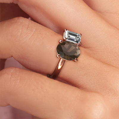 This 14 Carat rose gold ring is called Toi et Moi OVL-EME and is set with 9x7 mm smokey quartz. What is it that makes your relationship unique? What is it about her that makes you want to bend down on one knee? The unique bond between the two of you is emphasized by an equally unique ring. A one of a kind charming 2 stone engagement ring made especially for her. That is why this exclusive ring fits her like a glove. Each specific detail of this charming rose gold smokey quartz set engagement ring is hand-picked, crafted and polished by our expert goldsmith. The result is an exquisite ring, unique and perfectly crafted to perfection. That is what our expert Goldsmiths strive for. This jewel is made just for you, with attention to detail and design.After receiving your order, our goldsmiths will start the creative process of making your Toi et Moi OVL-EME engagement ring. We don't keep stock. This is advantageous because these costs will not be passed on to you. Therefore, we can offer jewelry at exceptionally low prices.Our team adds new designs to our online collection daily. Our designers and goldsmiths work together in creating the best design. We strive to offer a diverse collection of jewels. Perhaps you have a specific jewel design in mind. One you came across somewhere. Please contact us for a free consultation. We will make you an offer, based on a fair price/ quality ratio, that will baffle you.To make it easier for you, we offer a 30 day return policy. Check our terms and conditions.