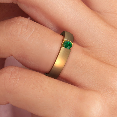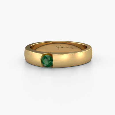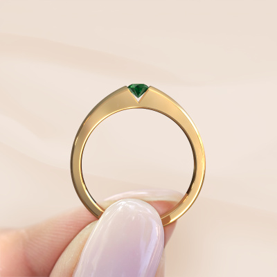 This 14 Carat gold ring is called Theresia and is set with 3.4 mm emerald. The tension setting is what makes this a special engagement ring because it emphasizes the emerald. Our expert goldsmith uses special techniques to set the emerald in this gold ring. By using these techniques, light reflects freely. This gives the ring its maximum shine and a glamorous appearance. A true work of art! The result is a unique ring, with a trendy appearance, passionately handcrafted to perfection by our expert goldsmith. A one-of-a-kind ring, designed for the love of your life. We recommend a solid gemstone, such as a diamond or sapphire, if you select this ring. The ring must be able to endure a lot of pressure during manufacturing. This piece of jewelry is made just for you by our master goldsmiths in our own studio.By using our modern techniques, we can design and customize the finest quality jewels with the utmost care for you. Our engagement rings are always priced 30 percent lower than other jewelers. We make engagement rings to order so we don't have to maintain a large stock. If you have a certain budget, we are more than happy to advice you accordingly.Different styles of new rings are made daily by our team. Perhaps you have found a solitaire engagement ring somewhere. One you would like to give to your loved one. Please feel free to share your thoughts and design with our jewel designers. We would love to turn your design into a modern engagement ring. You can follow the development of your ring design because we use very detailed 3D drawings. On top of that, you can order a dummy of the design. A dummy is a plastic ring, which can be shaped according your ring design. You can try it on and check if the engagement ring is up to standard. We will gladly send you a non-binding offer, based on a fair price/ quality ratio. The offer will baffle you, considering the quality of the ring and gemstones.To make it easier for you, we offer a 30 day return policy. Check our terms and conditions.