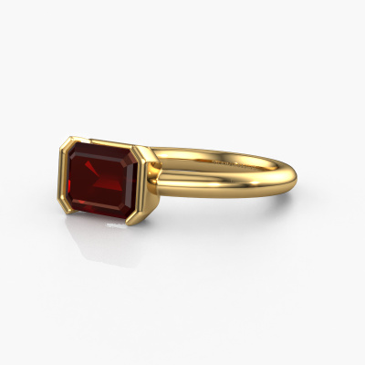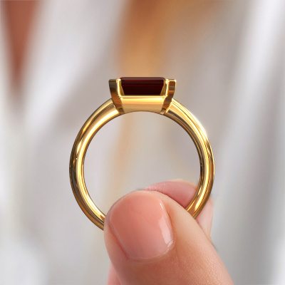 The ring shown above is called the Tayler EME, we call this a solitaire ring because it contains a single gemstone. The engagement ring is made in 14 Carat gold and has a emerald cut garnet of 8x6 mm. This modern gold solitaire ring with exquisite emerald cut garnet is a beautiful engagement ring. The open prong setting allows light to strike the gemstone from various angles. The ring also stands out because of the high positioning of the gemstone. Because diamonds symbolize true love and purity, they make the perfect gift for the love of your life. The symbol of eternal love is the centerpiece of this solitaire ring. Like a diamond, all other types of precious metal have their own attributed symbolic meaning. You can compile the solitaire engagement ring yourself in various precious metal combinations. This one has the combination of 14 Carat gold with gold. Each piece of jewelry is created to add sparkle to your finger, each jewel is lovingly made by hand by our goldsmiths.After receiving your order, our goldsmiths will passionately start the creative process of making your engagement ring in our own studio. Because we don't have a big stockpile, these costs will not be passed on to you. Our pricing is proof of that! We offer top quality jewels at lowest price, guaranteed.Our designers and goldsmiths work together each day, creating new jewels. Perhaps you have found a nice modern engagement ring somewhere, which can be used to customize your unique ring. Please feel free to contact us. We will make you an offer, based on a fair price/ quality ratio, which will amaze you.To make it easier for you, we offer a 30 day return policy. Check our terms and conditions.