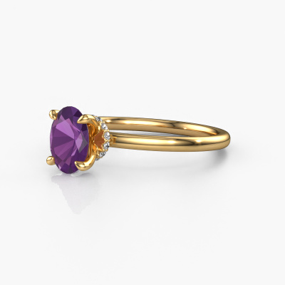 The ring shown above is called the Crystal OVL 3, we call this a solitaire ring because it contains a single gemstone. The engagement ring is made in 14 Carat gold and has a oval amethyst of 7,5x5,5 mm. This unique gold solitaire ring with exquisite oval amethyst is a beautiful engagement ring. The open prong setting allows light to strike the gemstone from various angles. The ring also stands out because of the high positioning of the gemstone. Because diamonds symbolize true love and purity, they make the perfect gift for the love of your life. The symbol of eternal love is the centerpiece of this solitaire ring. Like a diamond, all other types of precious metal have their own attributed symbolic meaning. You can compile the solitaire engagement ring yourself in various precious metal combinations. This one has the combination of 14 Carat gold with gold. Each piece of jewelry is made just for you by our master goldsmiths in our own studio.After receiving your order, our goldsmiths will passionately start the creative process of making your engagement ring in our own studio. Because we don't have a big stockpile, these costs will not be passed on to you. Our pricing is proof of that! We offer top quality jewels at lowest price, guaranteed.Our designers and goldsmiths work together each day, creating new jewels. Perhaps you have found a nice unique engagement ring somewhere, which can be used to customize your unique ring. Please feel free to contact us. We will make you an offer, based on a fair price/ quality ratio, which will amaze you.To make it easier for you, we offer a 30 day return policy. Check our terms and conditions.