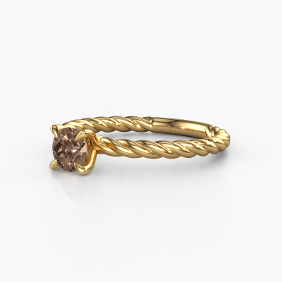 The ring shown above is called the Twanna, we call this a solitaire ring because it contains a single gemstone. The engagement ring is made in 14 Carat gold and has a round brown diamond of 0.50 crt. This fantasy gold solitaire ring with exquisite round brown diamond is a beautiful engagement ring. The open prong setting allows light to strike the gemstone from various angles. The ring also stands out because of the high positioning of the gemstone. Because diamonds symbolize true love and purity, they make the perfect gift for the love of your life. The symbol of eternal love is the centerpiece of this solitaire ring. Like a diamond, all other types of precious metal have their own attributed symbolic meaning. You can compile the solitaire engagement ring yourself in various precious metal combinations. This one has the combination of 14 Carat gold with gold. Each piece of jewelry is made by a team of passionate goldsmiths and jewel designers. This will make your crown jewel truly eye-catching.After receiving your order, our goldsmiths will passionately start the creative process of making your engagement ring in our own studio. Because we don't have a big stockpile, these costs will not be passed on to you. Our pricing is proof of that! We offer top quality jewels at lowest price, guaranteed.Do you have a specific ring in mind? One you came across somewhere. Please feel free to tell us your wishes and we will turn your design into a unique engagement ring. You can follow the development of your ring design because we use 3D drawings. This gives you a realistic preview of your design. We will gladly send you a non-binding offer, based on a fair price/ quality ratio. It will amaze you.To make it easier for you, we offer a 30 day return policy. Check our terms and conditions.
