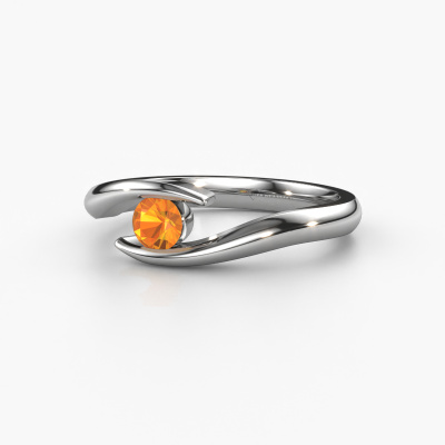 This platinum ring is called Alaina and is set with citrin. Do you keep up with the latest fashion trends? Do you want a unique engagement ring that matches your lifestyle? This graceful engagement ring is an extraordinary ring which can be custom made to fit your or her personal style. This modern platinum engagement ring is set with citrin. Our citrin are carefully selected for this specific ring in order to create the best effect. Our expert goldsmith will create your ring in our own artisan studio where the citrin will be set with great care. The ring will then be polished to perfection. Nothing but the best for the love of your life! This jewel is unique in every way! Simply customize to your likingBy using our modern techniques, we can design and customize the finest quality jewels with the utmost care for you. Our engagement rings are always priced 30 percent lower than other jewelers. We make engagement rings to order so we don't have to maintain a large stock. If you have a certain budget, we are more than happy to advice you accordingly.Our team adds new designs to our online collection daily. Our designers and goldsmiths work together in creating the best design. We strive to offer a diverse collection of jewels. Perhaps you have a specific jewel design in mind. One you came across somewhere. Please contact us for a free consultation. We will make you an offer, based on a fair price/ quality ratio, that will baffle you.To make it easier for you, we offer a 30 day return policy. Check our terms and conditions.
