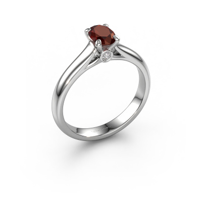 The ring shown above is called the Valorie ovl 1, we call this a solitaire ring because it contains a single gemstone. The engagement ring is made in platinum and has a oval garnet of 6.5x4.5 mm. This modern platinum solitaire ring with exquisite oval garnet is a beautiful engagement ring. The open prong setting allows light to strike the gemstone from various angles. The ring also stands out because of the high positioning of the gemstone. Because diamonds symbolize true love and purity, they make the perfect gift for the love of your life. The symbol of eternal love is the centerpiece of this solitaire ring. Like a diamond, all other types of precious metal have their own attributed symbolic meaning. You can compile the solitaire engagement ring yourself in various precious metal combinations. This one has the combination of platinum with platinum. Each piece of jewelry is made just for you, with attention to detail and design.By using our modern techniques, we can design and customize the finest quality jewels with the utmost care for you. Our engagement rings are always priced 30 percent lower than other jewelers. We make engagement rings to order so we don't have to maintain a large stock. If you have a certain budget, we are more than happy to advice you accordingly.Do you have a specific ring in mind? One you came across somewhere. Please feel free to tell us your wishes and we will turn your design into a unique engagement ring. You can follow the development of your ring design because we use 3D drawings. This gives you a realistic preview of your design. We will gladly send you a non-binding offer, based on a fair price/ quality ratio. It will amaze you.To make it easier for you, we offer a 30 day return policy. Check our terms and conditions.