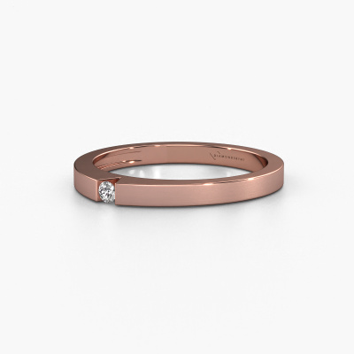 This 14 Carat rose gold ring is called Lizzy 1 and is set with diamond. Do you keep up with the latest fashion trends? Do you want a unique engagement ring that matches your lifestyle? This edgy engagement ring is an extraordinary ring which can be custom made to fit your or her personal style. This modern rose gold engagement ring is set with diamond. Our diamonds are carefully selected for this specific ring in order to create the best effect. Our expert goldsmith will create your ring in our own artisan studio where the diamond will be set with great care. The ring will then be polished to perfection. Nothing but the best for the love of your life! This jewel is created to add sparkle to your finger, each jewel is lovingly made by hand by our goldsmiths.By using our modern techniques, we can design and customize the finest quality jewels with the utmost care for you. Our engagement rings are always priced 30 percent lower than other jewelers. We make engagement rings to order so we don't have to maintain a large stock. If you have a certain budget, we are more than happy to advice you accordingly.Do you have a specific ring in mind? One you came across somewhere. Please feel free to tell us your wishes and we will turn your design into a unique engagement ring. You can follow the development of your ring design because we use 3D drawings. This gives you a realistic preview of your design. We will gladly send you a non-binding offer, based on a fair price/ quality ratio. It will amaze you.To make it easier for you, we offer a 30 day return policy. Check our terms and conditions.