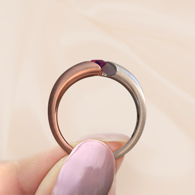 This 14 Carat rose gold ring is called Hojalien 1 and is set with rhodolite. Do you keep up with the latest fashion trends? Do you want a unique engagement ring that matches your lifestyle? This orb shaped engagement ring is an extraordinary ring which can be custom made to fit your or her personal style. This modern rose gold engagement ring is set with rhodolite. Our rhodolite are carefully selected for this specific ring in order to create the best effect. Our expert goldsmith will create your ring in our own artisan studio where the rhodolite will be set with great care. The ring will then be polished to perfection. Nothing but the best for the love of your life! This jewel is created to add sparkle to your finger, each jewel is lovingly made by hand by our goldsmiths.After receiving your order, our goldsmiths will passionately start the creative process of making your engagement ring in our own studio. Because we don't have a big stockpile, these costs will not be passed on to you. Our pricing is proof of that! We offer top quality jewels at lowest price, guaranteed.Different styles of new rings are made daily by our team. Perhaps you have found a solitaire engagement ring somewhere. One you would like to give to your loved one. Please feel free to share your thoughts and design with our jewel designers. We would love to turn your design into a modern engagement ring. You can follow the development of your ring design because we use very detailed 3D drawings. On top of that, you can order a dummy of the design. A dummy is a plastic ring, which can be shaped according your ring design. You can try it on and check if the engagement ring is up to standard. We will gladly send you a non-binding offer, based on a fair price/ quality ratio. The offer will baffle you, considering the quality of the ring and gemstones.To make it easier for you, we offer a 30 day return policy. Check our terms and conditions.