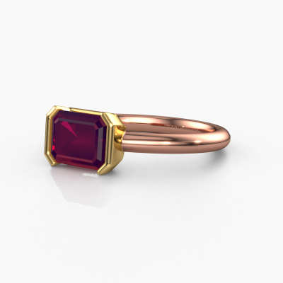 The ring shown above is called the Tayler EME, we call this a solitaire ring because it contains a single gemstone. The engagement ring is made in 14 Carat rose gold and has a emerald cut rhodolite of 8x6 mm. This modern rose gold solitaire ring with exquisite emerald cut rhodolite is a beautiful engagement ring. The open prong setting allows light to strike the gemstone from various angles. The ring also stands out because of the high positioning of the gemstone. Because diamonds symbolize true love and purity, they make the perfect gift for the love of your life. The symbol of eternal love is the centerpiece of this solitaire ring. Like a diamond, all other types of precious metal have their own attributed symbolic meaning. You can compile the solitaire engagement ring yourself in various precious metal combinations. This one has the combination of 14 Carat rose gold with gold. Each piece of jewelry is created to add sparkle to your finger, each jewel is lovingly made by hand by our goldsmiths.After receiving your order, our goldsmiths will passionately start the creative process of making your engagement ring in our own studio. Because we don't have a big stockpile, these costs will not be passed on to you. Our pricing is proof of that! We offer top quality jewels at lowest price, guaranteed.Our designers and goldsmiths work together each day, creating new jewels. Perhaps you have found a nice modern engagement ring somewhere, which can be used to customize your unique ring. Please feel free to contact us. We will make you an offer, based on a fair price/ quality ratio, which will amaze you.To make it easier for you, we offer a 30 day return policy. Check our terms and conditions.