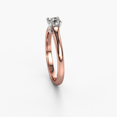The ring shown above is called the Valorie RND 1, we call this a solitaire ring because it contains a single gemstone. The engagement ring is made in 14 Carat rose gold and has a round diamond of 0.40 crt. This modern rose gold solitaire ring with exquisite round diamond is a beautiful engagement ring. The open prong setting allows light to strike the gemstone from various angles. The ring also stands out because of the high positioning of the gemstone. Because diamonds symbolize true love and purity, they make the perfect gift for the love of your life. The symbol of eternal love is the centerpiece of this solitaire ring. Like a diamond, all other types of precious metal have their own attributed symbolic meaning. You can compile the solitaire engagement ring yourself in various precious metal combinations. This one has the combination of 14 Carat rose gold with white gold. Each piece of jewelry is made just for you, with attention to detail and design.By using our modern techniques, we can design and customize the finest quality jewels with the utmost care for you. Our engagement rings are always priced 30 percent lower than other jewelers. We make engagement rings to order so we don't have to maintain a large stock. If you have a certain budget, we are more than happy to advice you accordingly.Do you have a specific ring in mind? One you came across somewhere. Please feel free to tell us your wishes and we will turn your design into a unique engagement ring. You can follow the development of your ring design because we use 3D drawings. This gives you a realistic preview of your design. We will gladly send you a non-binding offer, based on a fair price/ quality ratio. It will amaze you.To make it easier for you, we offer a 30 day return policy. Check our terms and conditions.