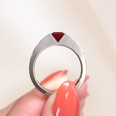 This 14 Carat white gold ring is called Arlena 1 and is set with 4 mm ruby. The tension setting is what makes this a special engagement ring because it emphasizes the ruby. Our expert goldsmith uses special techniques to set the ruby in this white gold ring. By using these techniques, light reflects freely. This gives the ring its maximum shine and a glamorous appearance. A true work of art! The result is a unique ring, with a trendy appearance, passionately handcrafted to perfection by our expert goldsmith. A one-of-a-kind ring, designed for the love of your life. We recommend a solid gemstone, such as a diamond or sapphire, if you select this ring. The ring must be able to endure a lot of pressure during manufacturing. This piece of jewelry is made just for you, with attention to detail and design.By using a combination of the latest modern techniques, combined with ancient crafting, we can make all our engagement rings in our own studio. Each jewel is made to order. This is advantageous because we can offer you a price you won't find anywhere else.Do you have a specific ring in mind? One you came across somewhere. Please feel free to tell us your wishes and we will turn your design into a unique engagement ring. You can follow the development of your ring design because we use 3D drawings. This gives you a realistic preview of your design. We will gladly send you a non-binding offer, based on a fair price/ quality ratio. It will amaze you.To make it easier for you, we offer a 30 day return policy. Check our terms and conditions.