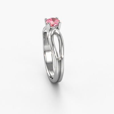 The ring shown above is called the Antonia rnd 1. We call this a solitaire ring because it contains a single gemstone. The engagement ring is made in 14 Carat white gold and has a round tourmaline pink of 5 mm. This extraordinary traditional white gold solitaire engagement ring is set with a beautiful round tourmaline pink to add sparkle to your proposal. The open prong setting allows light to strike the gemstone from various angles. Did you know a diamond represents everlasting love and fidelity? This makes it a perfect centerpiece. Our goldsmith carefully positions the gemstone of your choosing high on top of the ring, which makes it stand out. Each piece of jewelry is made just for you by our master goldsmiths in our own studio.Are you on a budget? Please feel free to contact us, so we can go discuss your options. We offer our engagement rings at guaranteed best price, because we make them to order. You won't find such a price anywhere else!Different styles of new rings are made daily by our team. Perhaps you have found a solitaire engagement ring somewhere. One you would like to give to your loved one. Please feel free to share your thoughts and design with our jewel designers. We would love to turn your design into a traditional engagement ring. You can follow the development of your ring design because we use very detailed 3D drawings. On top of that, you can order a dummy of the design. A dummy is a plastic ring, which can be shaped according your ring design. You can try it on and check if the engagement ring is up to standard. We will gladly send you a non-binding offer, based on a fair price/ quality ratio. The offer will baffle you, considering the quality of the ring and gemstones.To make it easier for you, we offer a 30 day return policy. Check our terms and conditions.
